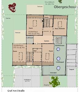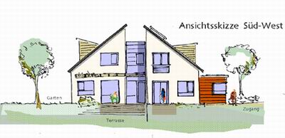 In Wohnlage wurde dieses Haus mit einer integrierten Arxtpraxis für alternative Medizin projektiert. Beide Haushälften werden durch eine Glasfuge verbunden. Mit einer möglichen Wohnfläche von 185m2 und zusätzlich 65 m2 Praxisfläche die auch als Einliegerwohnung genutzt werden kann, sowie 65 m2 Teil-Unterkellerung.