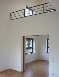 Wohn- und Arbeitsebene mit seitlich angegliederter Terrasse, eine