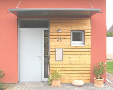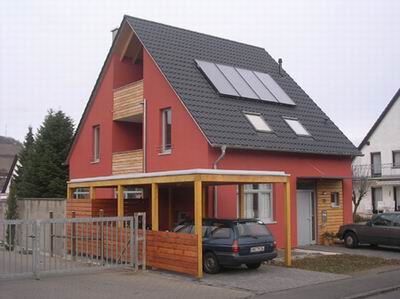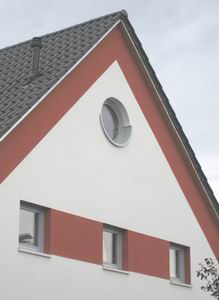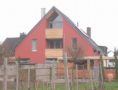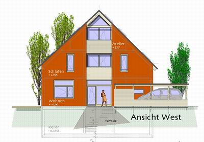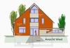 farblich mit Weiss abgesetzt und ermöglicht im EG noch den Anbau