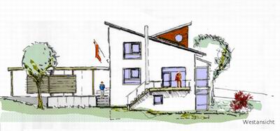 Abschluss der offenen Bebauung. Der klare Baukörper versteht sich