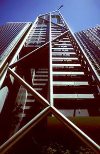 Ein weiterer Schwerpunkt meiner Arbeit lag im Ausbau des Capita Centre in Sydney. Für die Kunst am Bau konnte er Lin Utzon gewinnen, die Tochter des legendären Jörn Utzon der während der Bauarbeiten des opera houses Australien verlassen und nie wieder betreten hat. Lin war die erste der Familie die Sydney dank Harry Seidler wieder betreten hat. Ihre Kunst schmückt das Entree des Capita Centres. Das Hochhaus wurde an einem äusseren Stahlrahmen aufgehängt. Durch das dreiseitig eingebaut Hochhaus schraubt sich ein Lichthof als Atrium, das zur Mittagszeit die Sonne bis ins Erdgeschoss lässt.