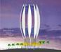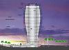 An einer Auffahrt gelegen mit Wasserbecken ragt das Hochhaus in Form der Blume in die Höhe.