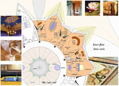 Die Lobby und die verschiedenen Restaurants liegen auf verschieden Ebenen unter einer großen Zeltdachkonstruktion, das `highlight´ bildet das Top-Floor Restaurant mit Blick über die Insel Kish. Das gesamte Hotel hat eine Grundfläche von 45.000 m2. Die Suiten wurden von 65 bis 390 m2 Größe geplant. Einzelne Suiten erstrecken sich über 2 Geschosse mit eigenem Aufzug, mehrere Schlafzimmern und Multimedia -Konferrenzräumen, eigenem Büro, Kaminzimmer und persönlichem Butler-Service.