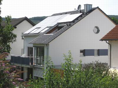 gernd wurde das Nachbarhaus mit einbezogen. Die Photovoltaik liefert 3,6 Kwpeak Solarstrom. Für die Ökotechnik wurden zudem vielfältige staatliche Fördermittel aktiviert. Das primäre planerische Ziel ist die Vermeidung von Energieverlusten. Die Wände sind aus Dämmsteinen mit einem 14 cm Wärme-Dämm-