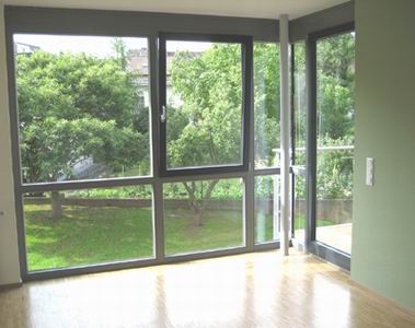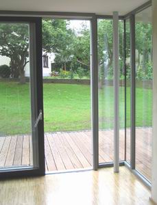 Verbund-System, das Dach aus 24 cm Hanf und 4 cm Holzwolleplatten, die Holzfenster sind 3-fach verglast. Der Baumbestand im Garten konnte erhalten werden. Das Regenwasser wird zur Gartenbewässerung ge-