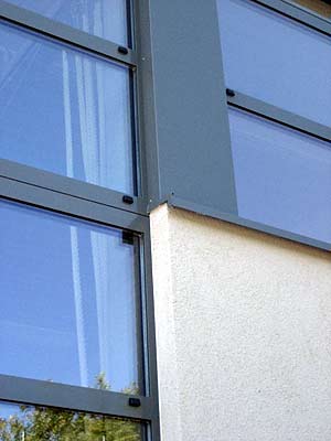 Die alten Fassaden der Turnhalle der Heimersheimer Grundschule waren in die Jahre gekommen, die Einscheibenverglasung war undicht und als Dämmglas faktisch nicht vorhanden. Der Beschluss stand die große Nordfassade abschnitts- weise energetisch zu saniert. Durch die günstigen Ausschreibungs- ergebnisse konnten die Fenster aller Fassaden ausgetauscht werden. Der Betonbau aus den 70er Jahren hatte die Fenster zwischen den Betonstützen sitzen, um bei der Sanierung Wärmebrücken zu vermeiden wurde das neue Fassadenband an die Betonvorder- kante gestellt und mit einem Wärmedämmverbundsystem über- zogen. Die in die Jahre ge- kommenen Betonfertigteile er- hielten, wo notwendig eine Betonsanierung. Das Wärmedämm- verbundsystem wurde farblich neu gestaltet. Auch diese Sanierungs- arbeiten wurden innerhalb der Schulferien durchgeführt.